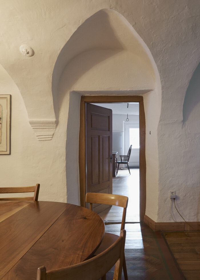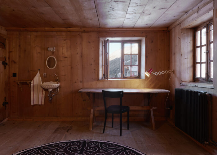 Die Chasa Parli hat drei Stockwerke mit sechs Ateliers, die Schlafen und Arbeiten vereinen. Alle, mit Ausnahme von Nr. 5, haben ihr eigenes Bad – teils integriert, teils über den Flur.