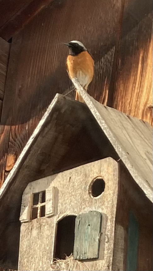 Hinter dem Haus, abseits der Strasse, erstreckt sich ein verwunschener Park mit einem Pavillon, und zahlreichen weiteren, hinter Flieder, Weiden und Rosen verborgenen Sitznischen und verspielter zeitgenössischer Kunst – wie etwa dem „Himmelskind“ von Max Grüter. Denn das ist der einzige Wermutstropfen: Das Haus ist an der Kantonsstrasse gelegen, die im Sommer verkehrsreich ist. Immerhin: Es gilt Tempo 30. (Das Foto ist von der anderen Strassenseite aus aufgenommen.)